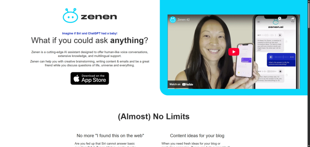 Rather than purely being a text-based chatbot, Zenen emphasises real conversation: you talk to it like a friend, ask questions about history or literature, brainstorm marketing ideas, or write emails and stories together.