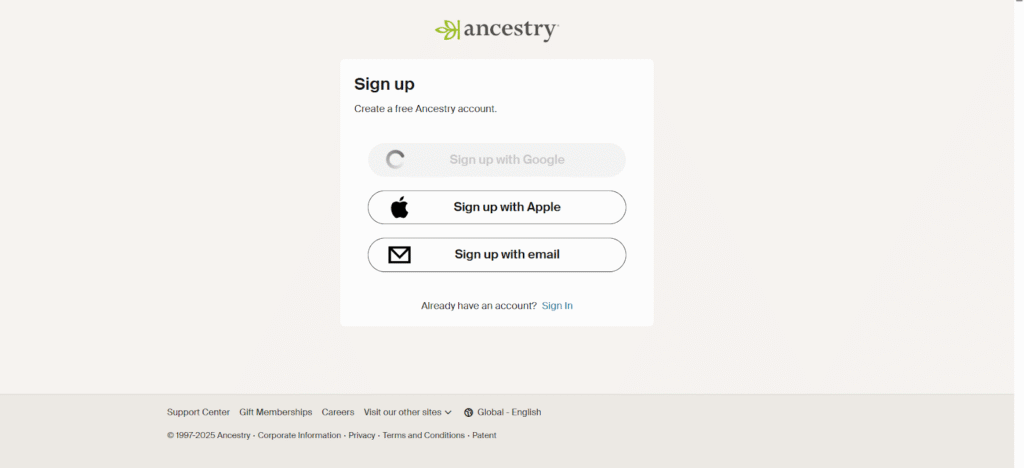 An underrated strength of Ancestry AI is how little friction there is to get started. The platform’s sign-up process is straightforward, guiding users through account creation, tree setup, and AI feature access without overwhelming them.